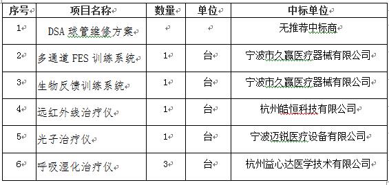宁波市鄞州人民医院采购呼吸湿化治疗仪等设备中标公示