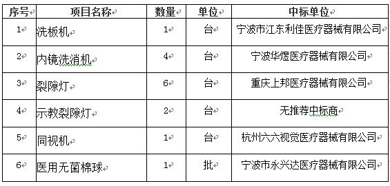 宁波市鄞州人民医院采购洗板机等设备中标公示