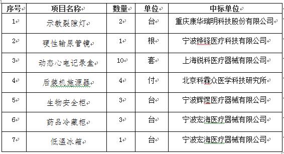 宁波市鄞州人民医院示教裂隙灯等医疗设备议标项目,于2017年8月15日以询价的方式,通过专家组综合评定,拟以下供应商中标: