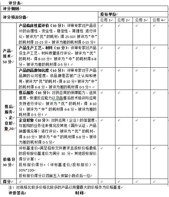 4、评分细则表(下附):评标委员会成员根据评分细则,在对各个投标人的产品、投标文件等进行审核和评论后,进行打分,并签名