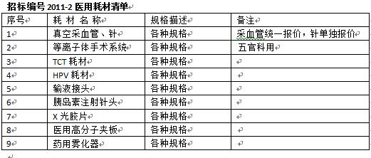 医用耗材院内招标项目