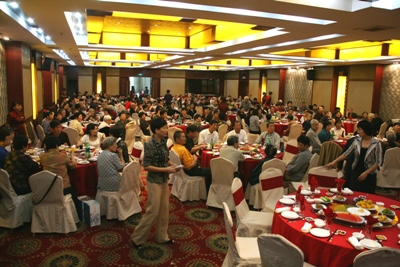 10月22日中午甬港饭店文澜厅,有二百余名离退休老同志应约前来。我院领导悉数到场,与离退休老同志欢聚一堂,共同庆祝这个特别的老人节。活动一开始,党委书记、院长潘亚梁与副书记郑荣雄先后发言,介绍了我院这一年来的发展情况,并向全体离退休职工为医院所作的贡献表示了由衷地感谢。潘院长还为70、80、90岁的老人们送上了生日礼品,并祝老人们健康长寿、开心快乐。近二小时的活动中,老同志们欢声笑语、其乐融融。