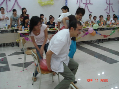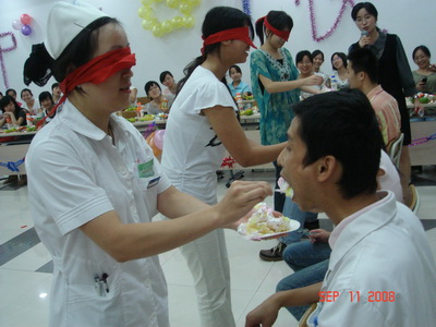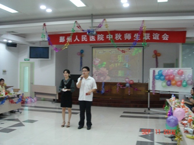 中国农历八月十五,是一个颇具中国特色的传统佳节,本院的科教科老师想让在本院实习的来自各地的实习生过一个温馨的中秋节,于是由呼吸内科承办了这次“乐翻天”中秋师生联谊活动。在主持人宋颜谨和汪力的致词下,联谊活动开始了,首先由俞万钧副院长发言,他的发言让我们进一步了解了鄞州人民医院近年的发展与取得的佳绩,同时指导我们如何在实习过程中更好地实习,鼓励我们做个好医生。在实习生代表感言以后,“乐翻天”的游戏,一个接一个地开始了,为了让每个人都有均等的机会参与游戏,主持人采取了击鼓传花的方式来选取游戏者,就这样,游戏者一个个幸运地产生了,无论是“双人运气球”还是“蒙眼喂蛋糕”;是“集体单腿站立”还是“抢救伤员”,每个游戏的参加者既有老师也有同学,不知道是游戏本生的好玩性,还是游戏者投入的缘故,每一个游戏都把大伙儿给逗乐了,真的体现了游戏的主题“乐翻天”。