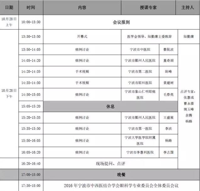 28日17:30-18:00召开眼科学专业委员会全体委员会议
