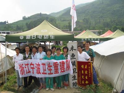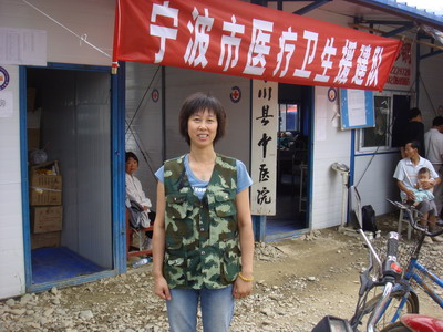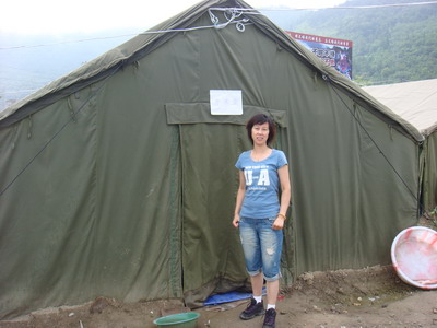 工作在高温下,吃住在帐篷里,走访在农户家,我院援川医生胡亚飞依旧快乐地忙碌着。虽然木鱼镇卫生院只是一顶顶帐篷支起来的简单场所,而且余震不断,仅7月24日一天,就发生6级左右余震3次,大家依旧快乐着。看着“情系灾区,关爱生命”的锦旗,大家工作中信心十足。一周前他们已搬进青川县城附近木头板房,目前条件有所改善,在青川中医院工作,尽管如此离我们这里乡镇卫生院仍有差距。