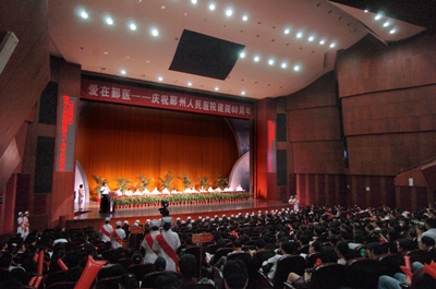 晚会上,诗朗诵《走过60年》、歌曲《爱在心间》等节目,不仅展示了鄞医60年的辉煌历程,也展现了一幅爱如潮水,温馨感人的医患和谐的长卷。60年来,鄞州人民医院注重职工素质教育,加强各学科建设,建立规范各项制度,提炼医院核心价值,从一家不起名的小医院,一跃为三级医院,省文明医院,医院先后有24项课题分别获省、市 、区各级科技进步奖、科技创新奖,93人获全国、省、市、区先进个人荣誉称号。由医院“白衣天使”们主演的音乐情景剧《真情》,演绎的就是发生在鄞医医护人员身边的真情故事,关怀病人无微不至,刻苦攻克医学难关,创造了许多如“全省首次采用强烈化疗治疗白血病、宁波市首例肝移植、宁波市首例肝肾联合移植、宁波市首例母子活体肾移植、宁波市首例异体干细胞移植、宁波市首例脐带血移植”等医学奇迹。
