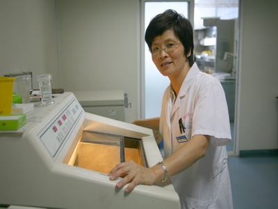 病理科王玲娣技师(下图)在宁波市病理学分会主办的2009年宁波市冷冻切片技术比赛中荣获第一名。她将代表宁波地区三级医院病理科参加全省技术比武。