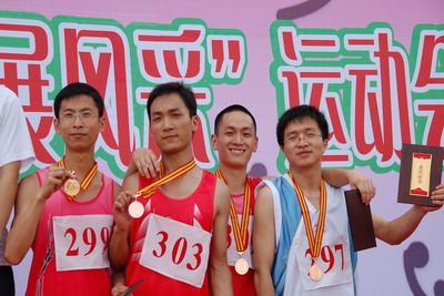 男子团体4×100米第三名   药剂科任元杰、直线加速朱其宝、放射科马攀江、