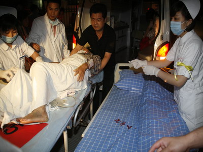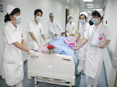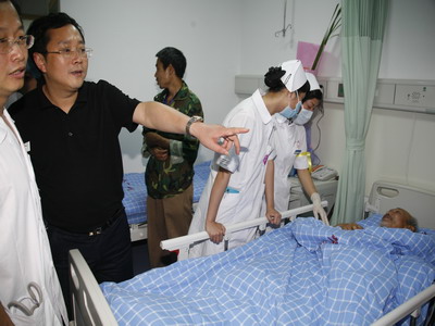 昨晚9时许,来自四川的六名地震伤员,在上级部门的统一安排下,顺利入住我院。为迎接伤员到来,医院上下携手同心,全力以赴。当六辆救护车连续开进肿瘤放化疗中心大楼前时,早已等候在门口的六组医护人员马上走上前去,以最快速度将他们送到早已准备好的爱心病房。新开放的34病区处处充满温馨,爱心墙上留下许多医护人员和志愿者真诚的祝愿。一名来自彭洲的病人家属一进房间就激动地流下了眼泪,马上用床头的直播电话给成都的亲戚打电话,她说医院里条件很好,所有的东西都准备好了,什么都不用买,让亲戚放心。