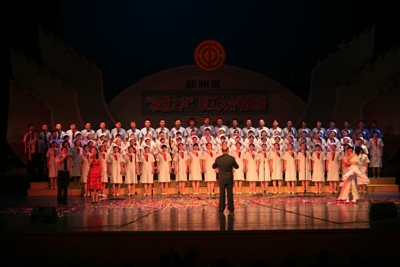 4月29日下午,由区总工会举办的庆祝“五一”国际劳动节暨“和谐之声”职工大型合唱会在区文化艺术中心隆重举行。我院白玉兰合唱团经过精心的准备,身着洁白的工作服,把新创作的院歌演绎得淋漓尽致,获得评委的高度肯定,最后以高分夺得本次比赛的金奖。