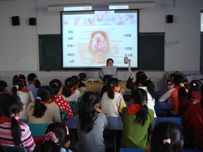 11月28日中午,在江东中心小学4楼的综合电教室和2楼的书法教室里,五年级组的全体男生和女生仰着一张张略带羞涩而又好奇的小脸,认真地听着来自鄞州人民医院的医生叔叔和医生阿姨为他(她)们讲授青春期的生理卫生知识。“医生老师”从生殖器的构造讲到第二性征的发育,然后又深入浅出地向小朋友们讲解了青春期生理卫生保健知识。在接下来的小朋友与“医生老师”的互动中,看得出此次的讲课确实让小朋友们受益匪浅。