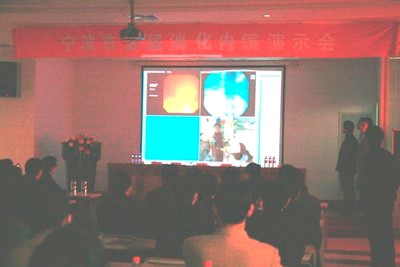 由宁波市医学会组织召开、我院负责承办的首届消化内镜演示会,会议采用现场操作声像同步传播的方式,将DSA室、胃镜室的内镜图像、X线图像、现场操作图像同时传送到学术会议中心,国内著名内镜专家、省消化内镜学会副主任委员张啸教授现场讲解。清晰的检查手术实景图像,加之张教授精辟的讲解,使所有到会代表受益匪浅。据张教授介绍,目前,能举办如此水平的消化内镜演示会,我省也只有2—3家省级医院,区级医院能举办如此综合性的内镜演示,这在我省还是第一次。