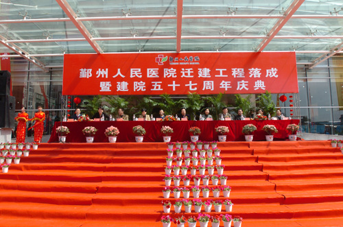 庆典会开始后,院长潘亚梁代表我院首先向来宾们介绍了我院迁建工程情况和建院57周年来取得的成就。据潘院长介绍,总投资2.4亿元的鄞州人民医院迁建工程,是鄞州区和宁波市实事工程之一,于2001年11月正式动工。高22层的我院病房综合大楼,2004年底竣工后,去年初投入使用,大楼设病床800余张、19个病区,内部拥有12部电梯,配置了物流、电脑终端等先进设施,工程先后获得宁波市“甬江杯”优质工程、浙江省优秀安装工程质量评比第一名和“钱江杯”优质工程;门急诊改扩建工程于2004年4月开工,总投资3860万,去年底竣工。改扩建后的新门急诊大楼,主楼和裙楼总建筑面积达15000余平方米,拥有中央空调、物流传送系统、视频传送系统、电子排队系统、监控保安系统等一系列智能化先进设施。在介绍建院57周年来取得的成就时,潘院长深情说,鄞州人民医院自1949年创建以来,历经数十年的搏击,从原来只有几间低矮医疗用房、医疗设施简陋的小医院,到今天拥有现代化医技大楼和一大批目前世界上最先进医疗设备的三级乙等综合性医院,回顾我院从小到大、从弱到强的发展历程,靠的是各级党委、政府的正确领导和竭力扶持,靠的是各级卫生行政主管部门的科学引导和管理,靠的是鄞医员工奋力拚搏无私奉献以及广大病友及其亲属的信任和理解。