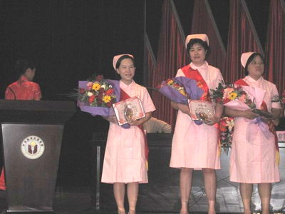 昨天是护士节,上午在区委党校举行了鄞州区卫生系统庆祝5·12国际护士节及第二届十佳护士表彰大会。我院护士周红波、王玉珍获“十佳”护士称号、郑萍获优秀护士称号。会议由局长亲自主持,局长将南丁格尔的平生和精神做了详细的介绍,使所有到会的领导和嘉宾对南丁格尔有了更深更细的了解。会议的气势无不让护理工作感到自豪和振奋。因为,会议不仅仅是护士姐妹们参加,还有各医院的院长和负责领导参加,尤其是副区长夏女士亲自为他们颁奖。体现了我们的各级领导对护理工作的重视和关心,体现了政府对卫生工作的支持和帮助。