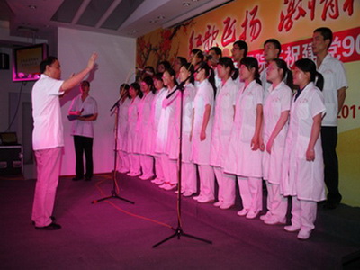 门诊党支部:合唱《中国,中国,鲜红的太阳永不落》