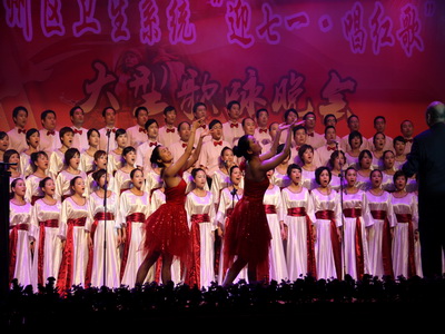 据悉,在医院工作任务十分繁重的情况下,我院组织的80人大合唱,得到了院领导的高度重视,党委副书记亲自参与编排,各科室负责人和广大职工积极参与和大力支持。参加排练的同志不辞辛劳,牺牲休息时间,利用一个多月时间排练出了有一定水准的大合唱。演员们良好精神风貌,积极热情、刻苦的训练精神,使我们的团队始终保持志气高昂,风采闪烁。参加此次比赛进一步推动了医院的精神文明建设,增强了医院员工的责任感和使命感、团队意识和协作意识。我院党委也以崭新的姿态为建党90周年华诞献上了贺礼!