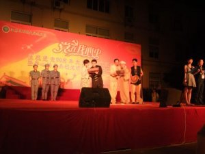 6月30日晚,由我院团委自编自导的情景诗朗诵《党颂》代表医院受邀参加了潜龙社区“党在我心中”庆祝建党90周年大型广场文艺晚会,表演取得了圆满成功。