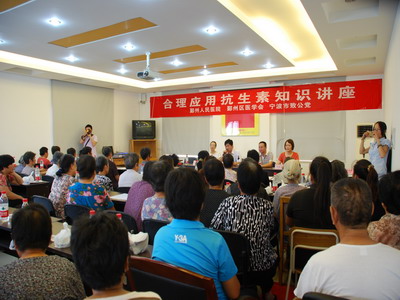 本次“药学下乡”活动主要有以下项目:专题讲座、免费量血压、用药咨询、整理小药箱和夏令用品发放等。尽管天气炎热,但村民们参加的热情不减,咨询台被围了个水泄不通,参加专题讲座的人数更是大大超过了预计,许多村民不得不站着听课。讲座针对群众的一些错误用药观念,宣传了抗菌药物合理应用、家庭药品的正确保存、不良用药习惯分析、如何选择感冒药等安全用药知识。讲座结束后会议室响起了热烈的掌声。这次活动共免费发放用药宣传资料及调查问卷和夏令药品250份,回收调查问卷200多份,活动在合心村村委会和默沙东公司的大力支持下取得了圆满的成功。大家都觉得这次活动非常有意义,不仅为村民们做了一件好事,而且也为展示鄞医、发扬鄞医人优良传统提供了一个新的平台。