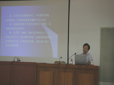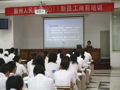 培训中,翁国斌院长致欢迎辞并从历史、现状、发展方向和医院应具备的精神等方面进行了医院概况介绍,他希望新员工安心和开心地工作、以院为荣,在工作中不断创造亲切、温馨、和谐的团队氛围。裴仁治副院长从医疗事故的防范和医疗文书的书写等方面进行了教育和讲解,他告诫医护人员,年轻并不可怕,要多积累工作经验,注重防范和请教。郑荣雄副书记展开了职业形象和人文服务的讲座,从图片、视频以及实际工作事例出发,讲解了工作中从语言到形象,从内心感受到外在表现的种种细节,并用六个字为新员工明确了方向,分别是负责(重视病友的诉说)、亲切(理解病友的痛苦)、尽力(解决病友的问题)的工作。