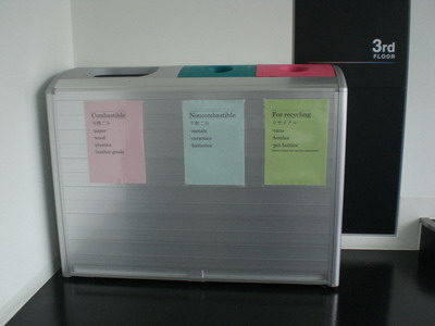 塑料瓶要扔到最右边的那个红色垃圾桶里。