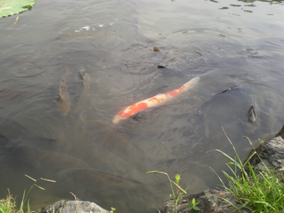 还有池塘里自由自在的鲤鱼,条条个头都不小,根本不怕人,因为日本人不吃河里的鱼,只把它们当作河道清道夫。