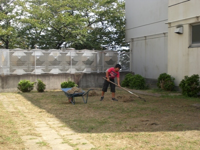 甚至还有除草这样的粗活,不要以为这是在体罚学生,这也是午间劳动的一部分。