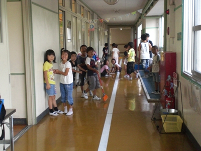 吃完午饭,学生们就开始每天例行的劳动了,学校没有保洁员,日常保洁都是学生们完成的,扫地、擦地板、擦窗户,小学生们忙得不宜乐乎。