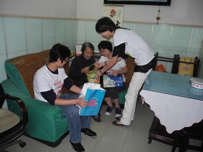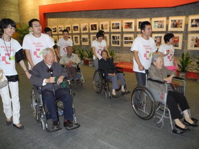 早上700,根据事先设定的路线,志愿者们整装待发,从潜龙新村到银杏小区到白云街……一户一户的走进退休老职工的家里,送上了包有牛奶、糕点、毛巾、牙膏等日用品和食品的重阳节大礼包。并把老人从家里搀扶下楼上车。爱心专车先后来到了风光秀丽的鄞州公园,有鄞州曼哈顿之称的南部商务区,走进了荟萃阿拉宁波的民俗馆、乾隆诞辰三百年颐和园珍宝展、颐和园文物展、李元风光摄影作品展等等的宁波市博物馆。志愿者们一边推着轮椅,一边做起了导游,用生动的语言一路介绍起了风景,还与老职工们共同缅怀了鄞州区的历史和旧貌。老人们一下子精神抖擞了,还为大家讲起了医院发展历程,趣人趣事。照相机为老人们留了影,记录下了这一幕幕和谐的场景。