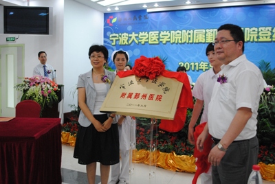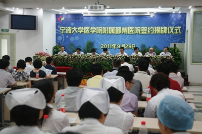 9月29日上午,宁波大学医学院附属鄞州医院正式签约并授牌,鄞州人民医院成为宁波大学医学院的附属医院。鄞州人民医成立于1949年,是省首批三级乙等医院。医院本着资源共享,优势互补、强强联合、共同发展的原则,将促使医院在强化人才培养的同时,进一步提高医务人员的理论水平和临床业务水平,为医学院在提高临床教学质量和培养合格的高级医学专业人才上搭建一个良好的实践教学平台。