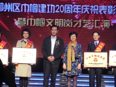 图为党委副书记郑荣雄接受“十佳巾帼明星岗”颁奖