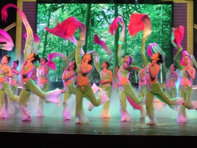 图为我院舞蹈队表演的古典舞《且吟春语》