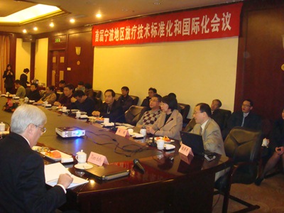 2012年1月3日首届宁波地区放疗技术标准化和国际化会议在宁波新舟宾馆成功举行,本次大会由鄞州人民医院放化疗中心郭建新主任主持,并邀请宁波籍留美专家殷芳芳教授授课,殷芳芳教授现任美国杜克大学(Duke University)肿瘤学终身教授,担任杜克大学医学及附属5家医院放疗技术及物理室主任,中美放疗协作组主席及IQRT主席。会议就如何将宁波地区的放疗技术标准化和国际化,以及如何面对新技术的应用及其质量控制等问题进行了交流探讨。