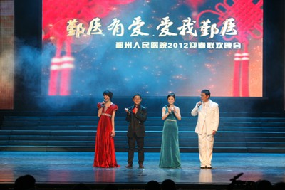 1月17日晚,我院隆重举办了“鄞医有爱·爱我鄞医”2012年迎春联欢晚会。全院职工、家属及医院领导1000余人欢聚一堂,区卫生局陆国咪副局长、鄞州区总工会黄春年副主席、共青团鄞州区委林丹枫副书记、院领导班子等领导应邀来到现场,与全院干部职工一道观看精彩演出。院党委书记院长翁国斌向全院职工拜年、发表了热情洋溢的新春贺词,表达了对全院职工、家属的问候和祝福。