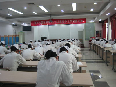 一场别开生面的护理技能比赛。4月27日的下午,12点半在多功厅里,来自全院各科的六十名代表,在有序的组织和规范的比赛场上,代表们个个精神饱满,衣着整洁,带着获胜的信念,积极参加技能竞赛。有的操作娴熟,有的准确轻快。经过三小时紧张的操作比武,终于选拔出一等奖,二等奖,三等奖和优秀奖。