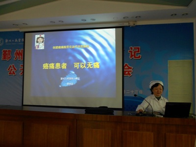 为加强肿瘤规范化诊疗管理,提高癌痛规范化治疗水平,浙江省卫生厅于2011年6月转发了卫生部办公厅《关于开展癌痛规范化治疗示范病房创建活动的通知》,并对活动提出了要求。根据卫生部的要求,我院领导高度重视,2012年2月20日成立了创建活动领导小组,制定活动方案,确定肿瘤放化疗中心三十三病区为我院参加浙江省第一批“示范病房”。随后,我院创建领导小组成员多次参加了由省卫生厅组织的培训会,并根据评审标准的要求严格落实各项工作,针对创建活动的疑惑,创建活动小组成员还去邵逸夫医院参观学习创建工作经验。