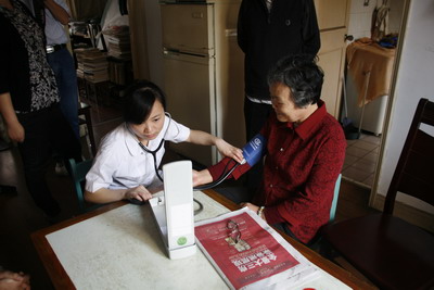 5月23日上午,门诊党支部党员应仲良医生、杨扬护士利用休息时间应邀赴凤凰社区义诊,帮助社区困难户及瘫痪老人听心率、测血糖、量血压,授护理知识,调整治疗方案,提供健康咨询,聆听老人的倾诉。我们相信,一份尊老助残的温情,足以让他们感到温馨,同时我们自己也得到了快乐和提高。