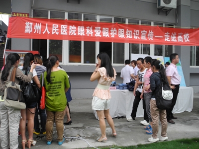6月20日上午,针对学生朋友的需求,我院眼科一行6人带着电脑验光仪、眼底镜、视力表、健康宣传手册等到宁波卫生职业技术学院为大学生们宣传爱眼护眼知识,受到同学们的欢迎。