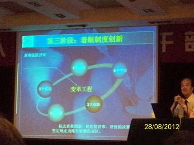 刘庭芳教授从事医院管理、教学、研究达35年,曾赴三十多个国家和地区的一百多所医院或大学考察与交流,有着丰富的理论和实践经验。尤其是追踪方法学的医院评价给大家留下了深刻的印象。教授通过亲身评价的视频以及台湾等医院个案追踪,使用特殊的追查方式去检视与感受病人所接受过的医疗服务质量。主要先从医院当日实际住院病人中挑选一个或几个病人接受过诊疗与服务的科室进行访查,同时从病人的角度实地了解服务流程与效果,以确认病人的安全、权利以及是否体现“以病人为中心”的理念。