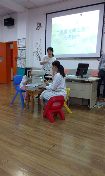 5月20日,第二站:中河街道格兰云天幼儿园。共筛查196名中、大班小朋友,其中视力低于0.8的有34位、低于0.25的2位(其中1位小朋友单眼视力< 0.1),斜视2位,倒睫3位。