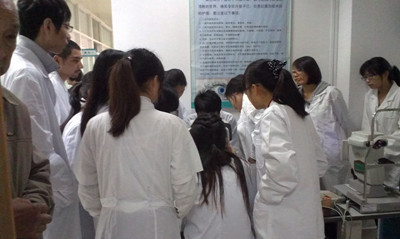 作为宁波大学附属医院,2013年11月8日鄞州人民医院眼科中心门诊及住院部分别接收宁波大学医学院大四62位学生参观、实际操作技能培训和实践。