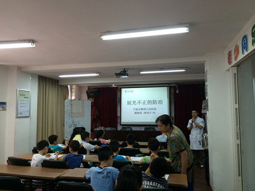日上午,鄞州人民医院眼科中心应邀参加我市江东华侨城社区组织的“中华好少年,同追中国梦”暑期系列活动之视力保健。我院眼科中心视光专家赖晓明医师为华侨城社区的小学生们上了一场生动的视力保健专题讲座,内容有:护眼知识测试、眼球解剖、近视原理、近视防治、爱眼知识等。