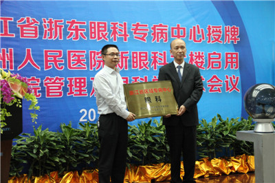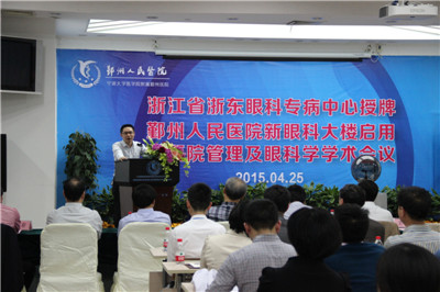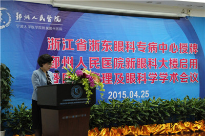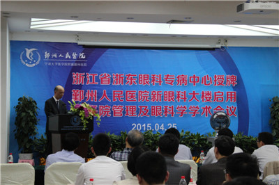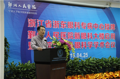4月25日下午,浙江省浙东眼科专病中心授牌暨鄞州人民医院新眼科大楼启用仪式在我院门诊四楼学术报告厅举行,浙江省卫计委医政处王桢处长、质评办缪建华副主任、鄞州区夏素贞副区长、宁波市卫计委高巍副巡视员、鄞州区卫计局朱叶锋局长等领导和省市著名眼科教授出席仪式。我院陆勤康院长及院领导班子成员、部分中层干部、医务人员和外院领导、眼科同道及新闻界朋友等共计150余人参加了仪式。仪式由党委副书记郑荣雄主持。