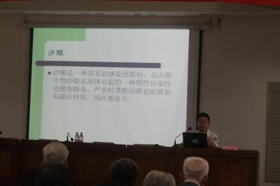 6月5日上午8:00,我院门诊4楼学术报告厅内座无虚席,且加座还在不断增加。今年6月6日是第20个全国“爱眼日”,活动主题为“告别沙眼盲,关注眼健康”。沙眼是世界卫生组织重点防治的眼病之一,反复感染沙眼可以导致睑结膜瘢痕及倒睫,从而对角膜造成损害,直至视力损伤、完全失明。关注眼健康,防范沙眼病流行。