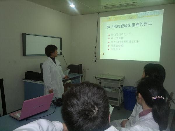 学内容由我科吕春儿主治医师精心准备,她向我们介绍了肺功能常规检测项目及肺功能结果对疾病诊断、治疗、预后评估及长期随访的重要意义,让我们在临床工作中能更好的利用这项检查技术进行相关疾病的诊断及治疗工作。