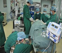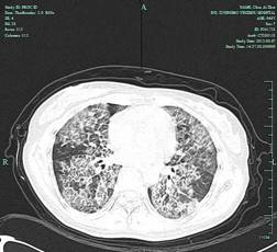 陈女士,48岁,5年前曾体检发现两肺弥漫性病变,2007年6月在我科经支气管镜肺活检及支气管灌洗等确诊肺泡蛋白沉积症。先后于2007年在我院及2010年两次行双侧全肺灌洗,病情得以改善。但4月前陈女士无明显诱因出现活动后气促,伴咳嗽,近期至我科门诊复诊,胸部CT提示肺内病变进展明显而入院。入院后我科在俞万钧主任医师的带领、组织下3月9日及3月16日再次对陈女士行全麻下左、右全肺灌洗术。该术过程相对复杂,需双腔气管插管行双肺隔离,一侧肺通气情况下,对另侧肺进行灌洗,总灌洗液体量27500毫升,术后患者常规入住ICU短时监护,不仅麻醉技术要求高,对我院呼吸科、麻醉科、放射科、重症监护病房等多科协作水平亦是考验。经治疗患者气促明显改善,病情稳定,今日好转出院。该手术再次顺利实施,并得以改进,体现了我院在该病诊治方面技术水平居宁波市前列。