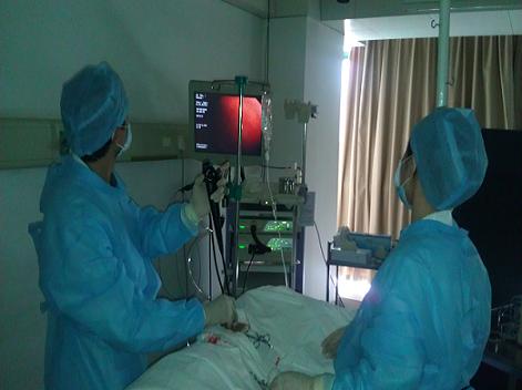 4月10日下午呼吸科应华娟副主任医师及付中明主治医师在内镜室为一名胸腔积液诊