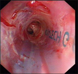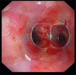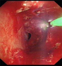 近日我科为一食道癌晚期、食道气道瘘的患者成功放置硅酮支架,患者在禁食1月后终于再次尝到了香甜的米饭,激动万分。该患者1年前在外院确诊为食道癌晚期,一直在我院放化疗科进行化疗及放疗,后患者逐渐出现进食后呛咳,复查胸部CT提示食道癌气道广泛侵袭,存在气道食道瘘可能。患者为避免进食后呛咳,已留置鼻饲,禁食1月。经我科俞万钧副院长会诊,决定为患者进行气道硅酮支架置入堵瘘口,让患者恢复进食。硅酮支架堵瘘术目前国际上开展不多,国内更是寥寥无几,手术难度大,成功率低。手术当日,俞万钧副院长亲自主刀,首先对气道浸润的肿瘤进行消融处理,后成功放置Y型硅酮支架,封堵瘘口。术后次日,患者就能进食流质,再次体会到进食的快乐。利用Y型气道硅酮支架封堵瘘口,全省目前未见报道,全国只有天坛医院,厦门二院等几家医院实施过,这一手术标志着我院硬镜,硅酮支架放置技术达到全国领先水平。(徐涛)