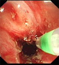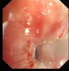 图片1 治疗前狭窄的右主气管痰液栓塞