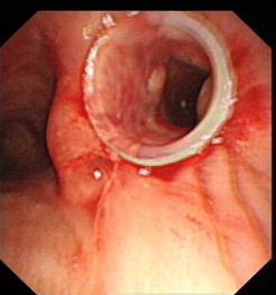 近日,我科成功为一右侧主支气管狭窄患者放置硅酮支架,解决患者多年气促烦恼。该患者为河南人,长期在宁波打工,自幼有气促病史,但能胜任一般体力活动,当时患者未予重视治疗。近年来,患者症状不断加重,稍活动即气促明显,为求诊治,至我院呼吸科门诊,当时经支气管镜检查确诊为右主支气管狭窄,考虑既往陈旧性支气管结核肉芽肿,疤痕形成所致。我科呼吸介入小组曾多次对患者病灶进行消融,球囊扩张等治疗,效果均不理想,该患者右主支气管狭窄处肉芽肿反复增生复发,气促症状反复发生。在俞万钧副院长组织下,我科进行多次全科室讨论,制定了右侧主支气管放置硅酮支架的手术方案。因为该患者自幼气道狭窄,疤痕形成较长,气道结构发生改变,手术存在相当难度,极有可能硅酮支架放置失败。我科针对该患者制定一系列周密的术前,术中,术后应对方案。昨日俞万钧副院长亲自主刀,在硬质支气管镜下对患者右侧主支气管狭窄段进行消融,成功放置硅酮支架,术后患者症状完全消失,本周即可出院。自2年前硅酮支架进入中国,我科在硬质支气管镜下已为多位患者放置硅酮支架,解除患者痛苦。(徐涛)