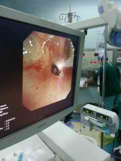 当激光照射到生物组织时,可出现光的吸收、反射、传导和扩散四种生物效应。经支气管镜激光治疗主要利用激光的热效应,激光照射活体组织时,一部分被组织吸收,光能转化为热能而产生一系列组织变化,如细胞水肿与死亡、蛋白凝固、组织水肿、脱手组织燃烧等。使受照射组织凝固、气化或碳化而达到消除病变的目的。近五年经支气管镜激光消融广泛应用于气管、支气管内增生性病变的治疗,使气管、支气管内增生性病变快速消融,使较小病变完全气化、部分病变充分凝固,随后坏死脱落、坏死组织通过吸引吸出或活检钳清除或术后患者咳出,达到通畅气道的目的。